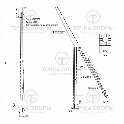 Если вас интересует цена на складывающиеся опоры освещения ОГКС-8, вы можете связаться с нами по указанным контактам или отправить запрос через форму на сайте. Мы рассчитаем стоимость граненых конических складывающихся опор в течение 30 минут (в нерабочее время срок может быть увеличен).